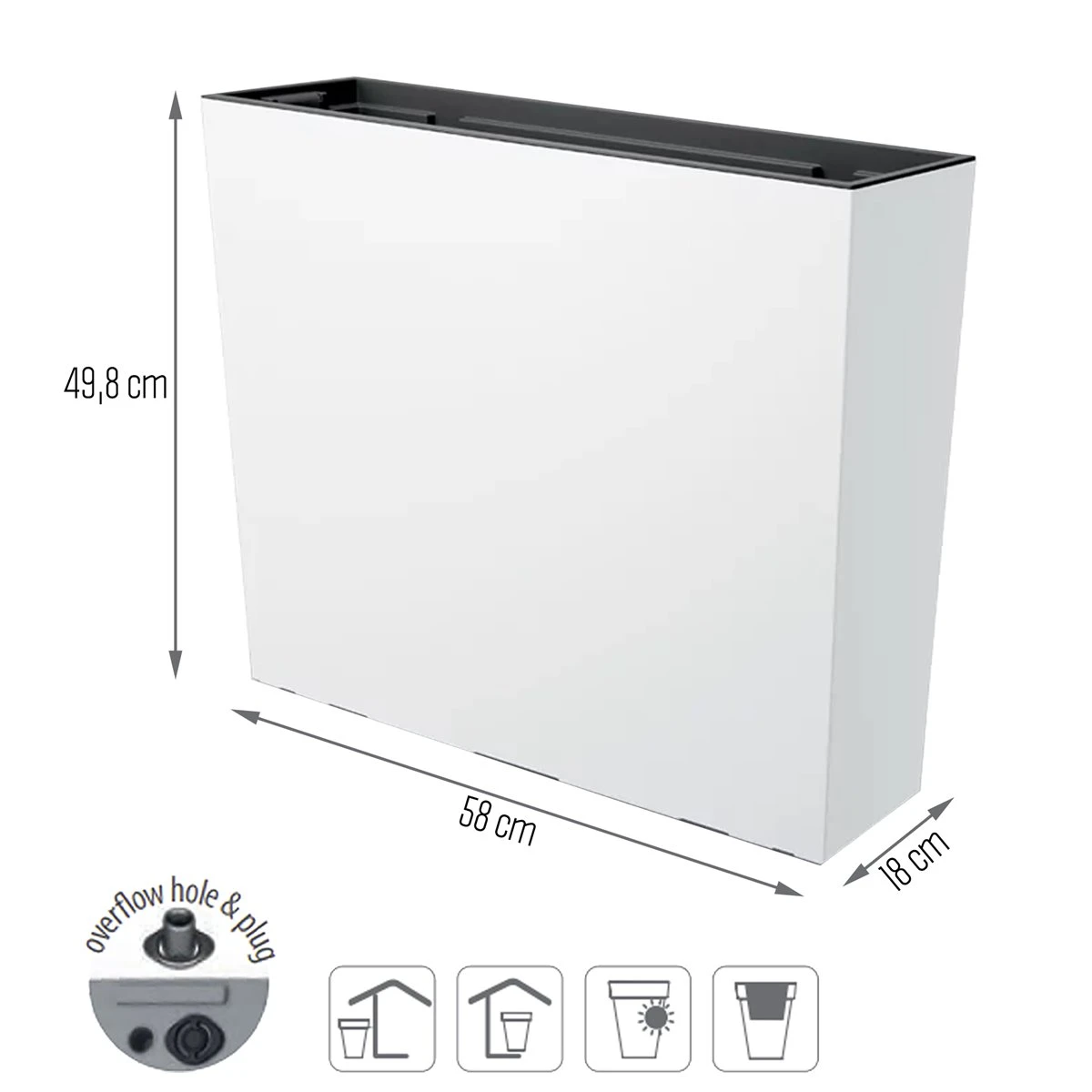 Jardinera Para Balcón De La Colección Urbi Case_x000D_Dimensiones: 580X180X498_x000D_Blancoexcelente Para Decoración En Interiores, Pero También Es Apta Para Ubicación En Exteriores. Perfecto Para Salones Domésticos, Terrazas, Jardines De Invierno O Patios, Fabricada En Plástico De Alta Calidad._x000D_Set 2 En 1: Macetero Que Incluye Un Depósito Interior Adaptado Que Reduce La Cantidad De Tierra Necesaria._x000D_Con Depósito