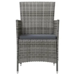 Con un diseño elegante y una estructura de acero duradero, este juego de muebles de comedor es la opción perfecta para tu espacio al aire libre. Este juego de comedor de jardín cuenta con una estructura de acero con recubrimiento en polvo, lo que hace que la mesa y las sillas sean estables y duraderas. Gracias al ratán PE resistente a la intemperie, el conjunto de muebles de exterior es fácil de limpiar. Los cojines son extraíbles y fáciles de limpiar. Además, los cojines gruesos añaden comodidad adicional al asiento. Nota: Para prolongar la vida de tus muebles de exterior, te recomendamos que los protejas con una funda impermeable. Mesa:Color: Gris y negroMaterial: Ratán sintético, acero con recubrimiento en polvo, vidrio templadoDimensiones de la mesa: 90 x 90 x 75 cm (ancho x profundo x altoSilla:Color del ratán sintético: GrisColor de cojín: Gris oscuroMaterial: Ratán sintético, acero con recubrimiento en polvo, tela (100% poliésterDimensiones: 61 x 60 x 88 cm (ancho x profundo x altoRequiere montaje: SíLa entrega contiene:1 x Mesa2 x Sillas2 x Cojines