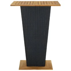 Este elegante juego de bar en el jardín te proporciona un momento agradable y cómodo con tu familia y amigos. Con una estructura de acero con recubrimiento en polvo cubierta con ratán de PE, esta mesa alta de bar tiene garantizado años de uso en el exterior. Además, la superficie y la base de madera de acacia maciza añaden una mayor robustez y estabilidad. Los taburetes tienen una construcción fuerte de estructura de acero y están hechos de ratán PE resistente a la intemperie, lo que garantiza la estabilidad y son fáciles de mover. El cojín y el reposapiés también agregan comodidad adicional al asiento de la silla. Nota: Para prolongar la vida útil de los muebles de exterior, te recomendamos que los limpies con regularidad y no los dejes al aire libre sin protección innecesariamente.Limpieza: Usar una solución de jabón suaveAlmacenamiento: Si es posible, guarda el producto en un lugar fresco y seco en el interior. Si el producto se almacena al aire libre, protégelo con una funda impermeable. Limpia y seca el exceso de agua o nieve de las superficies planas después de una lluvia o nevada. Permite la ventilación para evitar daños relacionados con la humedad. Mesa:Color: NegroMaterial: Ratán PE, acero con recubrimiento en polvo, madera maciza de acacia con un acabado al aceiteDimensiones: 80 x 80 x 110 cm (largo x ancho x altoGrosor de la superficie: 2 cmTaburetes:Color: NegroColor del cojín: CremaMaterial: Ratán sintético, acero con recubrimiento en polvo, tela (100% poliésterDimensiones: 40 x 44 x 108 cm (ancho x profundo x altoAltura del asiento desde el suelo: 76 cmDimensiones del cojín de asiento: 40 x 37 x 4 cm (ancho x profundo x grosorRequiere montaje: SíLa entrega incluye:1 x Mesa4 x Taburetes4 x Cojines de asiento