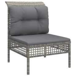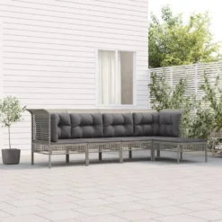 ¡Disfruta de un agradable café en el espacio al aire libre de la casa con este juego de muebles para jardín! Es un aporte perfecto para el jardín y la terraza, y crea además una impresión duradera. Material resistente a la intemperie: El ratán PE, también conocido como ratán sintético, es resistente a la intemperie y fácil de limpiar. La parte exterior se mantiene hermosa durante mucho tiempo. Ofrece una gran calidad, comodidad y aspecto estético.Estructura robusta: La estructura de acero con recubrimiento en polvo hace que el juego de muebles para exterior sea resistente y estable para usar a diario al aire libre.Cómodo asiento: Los respaldos aportan un plus de comodidad al juego de muebles de patio. Además, los cojines gruesos y acolchados proporcionan comodidad al asiento.Diseño modular: Cada artículo es flexible y fácil de mover, por lo que puedes combinarlo con otros segmentos modulares de nuestra tienda web para crear tus propias configuraciones personales de juegos de muebles de jardín. Nota:Para asegurarte de que tus muebles de exterior se mantengan hermosos, recomendamos protegerlos con una funda impermeable. Sofá esquinero de jardín:Color: GrisMaterial: Ratán PE, acero con recubrimiento en polvoDimensiones: 65 x 65 x 75 cm (ancho x profundo x altoAnchura del asiento: 55 cmProfundidad del asiento: 55 cmAltura del asiento desde el suelo: 32 cmCapacidad máxima de carga: 110 kgDiseño de cuadrículaSofá central de jardín:Color: GrisMaterial: Ratán PE, acero con recubrimiento en polvoDimensiones: 55 x 65 x 75 cm (ancho x profundo x altoAnchura del asiento: 55 cmProfundidad del asiento: 55 cmAltura del asiento desde el suelo: 32 cmCapacidad máxima de carga: 110 kgDiseño de cuadrículaReposapiés de jardín:Color: GrisMaterial: Ratán PE, acero con recubrimiento en polvoDimensiones: 55 x 55 x 32 cm (ancho x profundo x altoCapacidad máxima de carga: 110 kgDiseño de cuadrículaCojín:Color: Gris oscuroMaterial: Tela (100% poliésterMaterial del relleno del cojín de asiento: EspumaMaterial del relleno del cojín de respaldo: Fibra de algodónDimensiones del cojín de asiento: 55 x 55 x 3 cm (largo x ancho x grosorDimensiones del cojín de respaldo (grande: 56 x 39 x 10 cm (largo x ancho x grosorDimensiones del cojín de respaldo (pequeño: 48 x 39 x 10 cm (largo x ancho x grosorRequiere montaje: SíLa entrega incluye:2 x Sofás esquineros de jardín2 x Sofás centrales de jardín1 x Reposapiés de jardín5 x Cojines de asiento4 x Cojines de respaldo (grande2 x Cojines de respaldo (pequeño