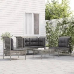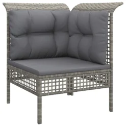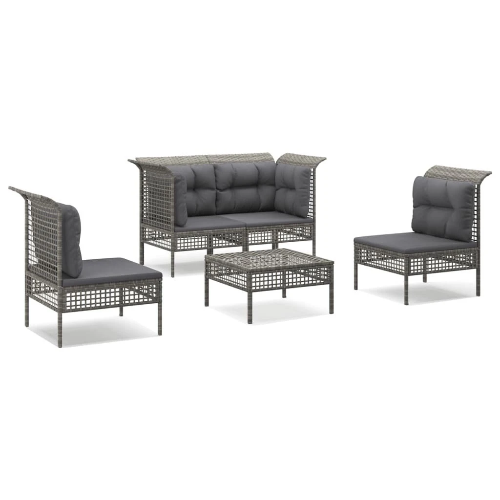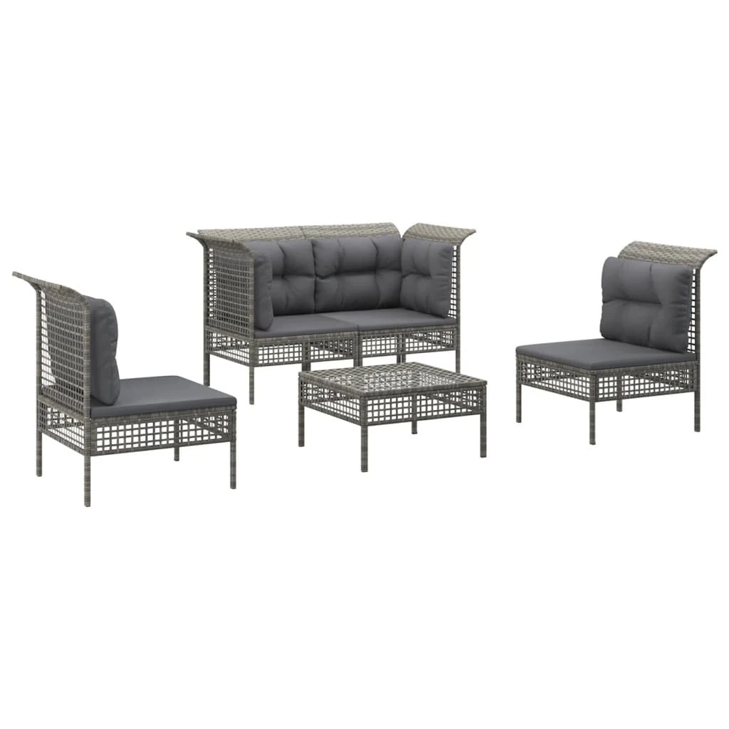 ¡Disfruta de un agradable café en el espacio al aire libre de la casa con este juego de muebles para jardín! Es un aporte perfecto para el jardín y la terraza, y crea además una impresión duradera. Material resistente a la intemperie: El ratán PE, también conocido como ratán sintético, es resistente a la intemperie y fácil de limpiar. La parte exterior se mantiene hermosa durante mucho tiempo. Ofrece una gran calidad, comodidad y aspecto estético.Estructura robusta: La estructura de acero con recubrimiento en polvo hace que el juego de muebles para exterior sea resistente y estable para usar a diario al aire libre.Cómodo asiento: Los respaldos aportan un plus de comodidad al juego de muebles de patio. Además, los cojines gruesos y acolchados proporcionan comodidad al asiento.Diseño modular: Cada artículo es flexible y fácil de mover, por lo que puedes combinarlo con otros segmentos modulares de nuestra tienda web para crear tus propias configuraciones personales de juegos de muebles de jardín. Nota:Para asegurarte de que tus muebles de exterior se mantengan hermosos, recomendamos protegerlos con una funda impermeable. Sofá esquinero de jardín:Color: GrisMaterial: Ratán PE, acero con recubrimiento en polvoDimensiones: 65 x 65 x 75 cm (ancho x profundo x altoAnchura del asiento: 55 cmProfundidad del asiento: 55 cmAltura del asiento desde el suelo: 32 cmCapacidad máxima de carga: 110 kgDiseño de cuadrículaSofá central de jardín:Color: GrisMaterial: Ratán PE, acero con recubrimiento en polvoDimensiones: 55 x 65 x 75 cm (ancho x profundo x altoAnchura del asiento: 55 cmProfundidad del asiento: 55 cmAltura del asiento desde el suelo: 32 cmCapacidad máxima de carga: 110 kgDiseño de cuadrículaReposapiés de jardín:Color: GrisMaterial: Ratán PE, acero con recubrimiento en polvoDimensiones: 55 x 55 x 32 cm (ancho x profundo x altoCapacidad máxima de carga: 110 kgDiseño de cuadrículaCojín:Color: Gris oscuroMaterial: Tela (100% poliésterMaterial del relleno del cojín de asiento: EspumaMaterial del relleno del cojín de respaldo: Fibra de algodónDimensiones del cojín de asiento: 55 x 55 x 3 cm (largo x ancho x grosorDimensiones del cojín de respaldo (grande: 56 x 39 x 10 cm (largo x ancho x grosorDimensiones del cojín de respaldo (pequeño: 48 x 39 x 10 cm (largo x ancho x grosorRequiere montaje: SíLa entrega incluye:2 x Sofás esquineros de jardín2 x Sofás centrales de jardín1 x Reposapiés de jardín5 x Cojines de asiento4 x Cojines de respaldo (grande2 x Cojines de respaldo (pequeño