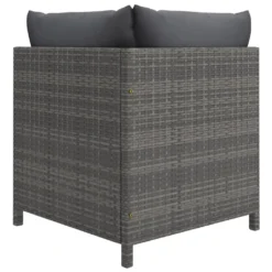 Crea un área de descanso relajante con este juego de muebles de jardín de ratán sintético. Este cómodo set de muebles de jardín, con una estructura de acero con recubrimiento en polvo recubierto con ratán PE, es robusto y fácil de limpiar. Los cojines bien acolchados añaden un plus de comodidad en tu tiempo de ocio. Las fundas de los cojines son extraíbles y lavables gracias a las cremalleras. Además, el reposapiés también sirve de mesita de centro para dejar lo que necesites. Este set de muebles de jardín es fácil de mover debido a su construcción ligera. Gracias al diseño modular, puedes colocar el conjunto en la disposición que prefieras. Nota importante: Recomendamos cubrir el set de salón en condiciones de lluvia, nieve y heladas para que sea más duradero. Color: GrisColor del cojín: Gris antracitaMaterial: Ratán PE (polietileno, acero con recubrimiento en polvo Material del cojín: Tela (100% poliésterMaterial de relleno del cojín del asiento: EspumaMaterial de relleno del cojín de respaldo: Fibra de algodónGrosor del cojín del asiento: 5 cmGrosor de cojín de respaldo: 15 cmSofá de esquina:Dimensiones: 60 x 60 x 60 cm (ancho x profundo x altoAnchura del asiento: 57 cmProfundidad del asiento: 57 cmAltura del asiento desde el suelo: 32 cmSofá central:Dimensiones: 54 x 60 x 60 cm (ancho x profundo x altoProfundidad del asiento: 57 cmAltura del asiento desde el suelo: 32 cmReposapiés:Dimensiones: 60 x 60 x 32 cm (ancho x profundo x altoRequiere montaje: SíLa entrega incluye:2 x Sofás de esquina2 x Sofás centrales3 x Taburetes/reposapiés7 x Cojines de asiento6 x Cojines de respaldo