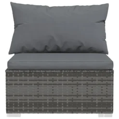 ¡Disfruta de tus momentos de relax con este moderno juego de muebles de jardín! Puede satisfacer una variedad de necesidades diferentes. Estructura robusta: Este juego de muebles para patio posee una robusta estructura de acero con recubrimiento en polvo y patas de cromado plástico, que es muy duradero.Material de primera calidad: El conjunto de muebles de jardín está diseñado con ratán PE resistente al agua, lo que lo hace fácil de limpiar, resistente y adecuado para el uso diario al aire libre.Diseño modular: El diseño modular también permite colocar el conjunto en cualquier disposición o combinarlos con otros segmentos modulares para satisfacer tus necesidades.Comodidad adicional para sentarse: Los cojines y almohadas acolchados gruesos y extraíbles brindan una comodidad óptima para tu experiencia de estar al aire libre. Nota:Para prolongar la vida de tus muebles de exterior, te recomendamos que los protejas con una funda impermeable. Color: GrisColor de cojín: Gris antracitaMaterial: Ratán PE, acero con recubrimiento en polvo, vidrio templado, plásticoMaterial del cojín/almohadón: Tela (100% poliésterSofá central:Dimensiones (cada una: 70 x 70 x 60.5 cm (largo x ancho x altoDimensiones del cojín de asiento: 70 x 63 x 3 cm (largo x ancho x grosorDimensiones del almohadón de respaldo: 70 x 40,5 cm (largo x anchoProfundidad del asiento: 63 cmAltura del asiento desde el suelo: 30 cmSofá esquinero:Dimensiones (cada una: 70 x 70 x 60.5 cm (largo x ancho x altoDimensiones del cojín de asiento: 63 x 63 x 3 cm (largo x ancho x grosorDimensiones del almohadón de respaldo grande/pequeño: 63/53 x 40,5 cm (largo x anchoProfundidad del asiento: 63 cmAltura del asiento desde el suelo: 30 cmMesa de centro:Dimensiones: 60 x 60 x 30 cm (largo x ancho x altoRequiere montaje: SíLa entrega contiene:6 x Sofás esquineros1 x Sofá central1 x Mesa de centro7 x Cojines de asiento13 x Cojines de respaldo