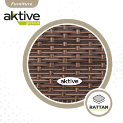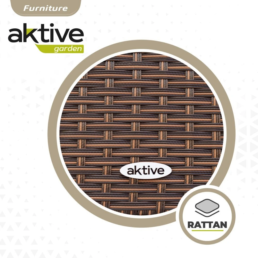 Conjunto de muebles de jardín Aktive Garden compuesto de 4 sillas y 1 mesa central cuadrada. Para un mayor confort y facilidad de uso, cada sillón incluye cojín acolchado para el asiento color crema y la mesa cuenta con superficie de cristal que facilita su limpieza. Tanto las sillas como la mesa están fabricados de ratán sintético, un material fácil de limpiar, resistente al agua y a la intemperie y los cojines están fabricados de poliéster de 180 gramos. Cada silla montada mide 49,5 cm de ancho, 49 cm de largo y 84 cm de alto y la mesa mide 100 cm de ancho 100 cm de largo y 75 cm de alto. Conjunto ideal para usar en interior y en exterior.
