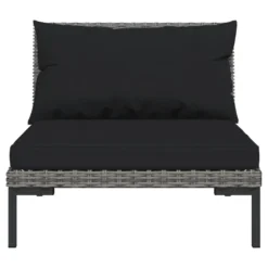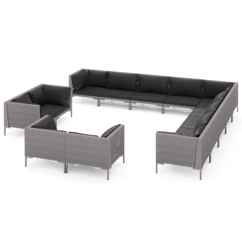 ¡Relájate y disfruta del espacio al aire libre de tu casa con este clásico juego de muebles para jardín! Estructura robusta: Con una estructura de acero con recubrimiento en polvo, el juego de muebles de patio es robusto y duradero.Construcción ligera: La construcción ligera hace que el juego de sofás sea fácil de mover.Material de primera calidad: Hecho de ratán PE semicircular, este juego de muebles para exteriores es resistente a la intemperie y al agua, fácil de limpiar y mantener.Cómodos cojines y almohadas: Los cojines y las almohadas acolchados gruesos y extraíbles brindan una comodidad óptima para que te sientes al aire libre. Nota:Recomendamos cubrir el conjunto de jardín en caso de lluvia, nieve y heladas para que dure más tiempo. Además, te recomendamos limpiarlo regularmente para alargar la vida de los muebles de exterior. No lo dejes al aire libre sin protección innecesariamente.Limpieza: Usa una solución de jabón suaveAlmacenamiento: Si es posible, guárdala en un lugar fresco y seco en el interior. Si el producto se almacena en el exterior, protégelo con una cubierta impermeable. Limpia y seca el exceso de agua o nieve de las superficies planas después de una lluvia o nevada. Permite la ventilación para evitar daños relacionados con la humedad. Color del ratán: Gris oscuroColor del cojín: NegroMaterial: Acero con recubrimiento en polvo, ratán PE semiredondo, tela (100 % poliésterMaterial de relleno: EspumaSofá central:Dimensiones: 70 x 70 x 61 cm (ancho x profundo x altoDimensiones de asiento: 70 x 60 cm (ancho x profundoAltura del asiento desde el suelo: 21 cmDimensiones del cojín del asiento: 68 x 58 cm (ancho x profundoDimensiones del cojín del respaldo: 68 x 37 cm (ancho x altoSofá esquinero:Dimensiones: 70 x 70 x 61 cm (ancho x profundo x altoDimensiones del asiento: 60 x 60 cm (ancho x profundoAltura del asiento desde el suelo: 21 cmDimensiones del cojín del asiento: 58 x 58 cm (ancho x profundoDimensiones del cojín del respaldo: 50/59 x 37 cm (ancho x altoRequiere montaje: SíLa entrega contiene:7 x Sofá de esquína6 x Sofás centrales13 x Cojines de asiento20 x Cojines de respaldo
