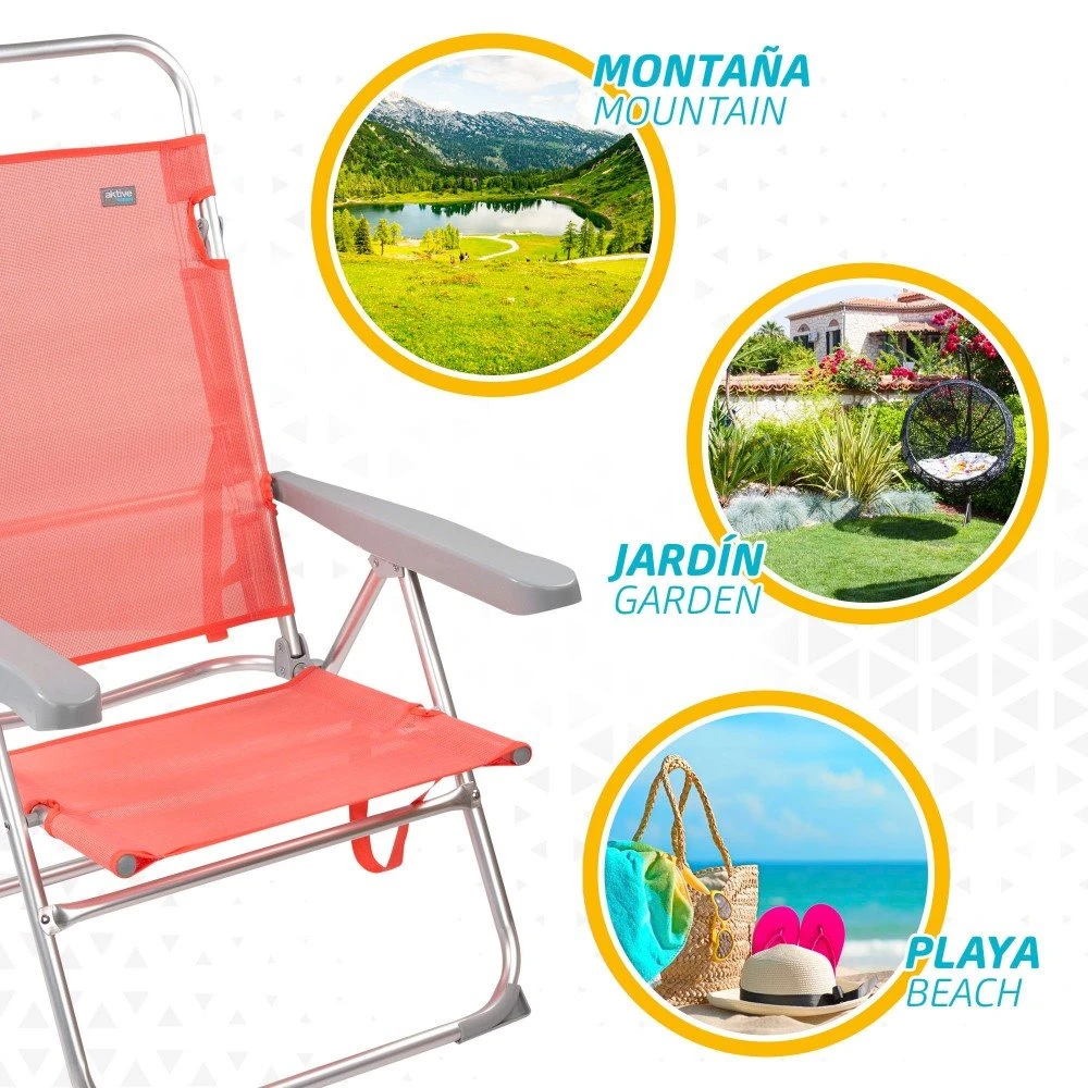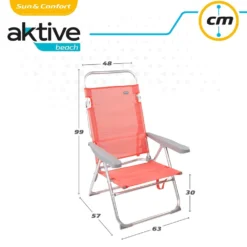 - Silla baja plegable Aktive Beach con medidas 48x57x99 cm ideal para ir a la playa o de camping