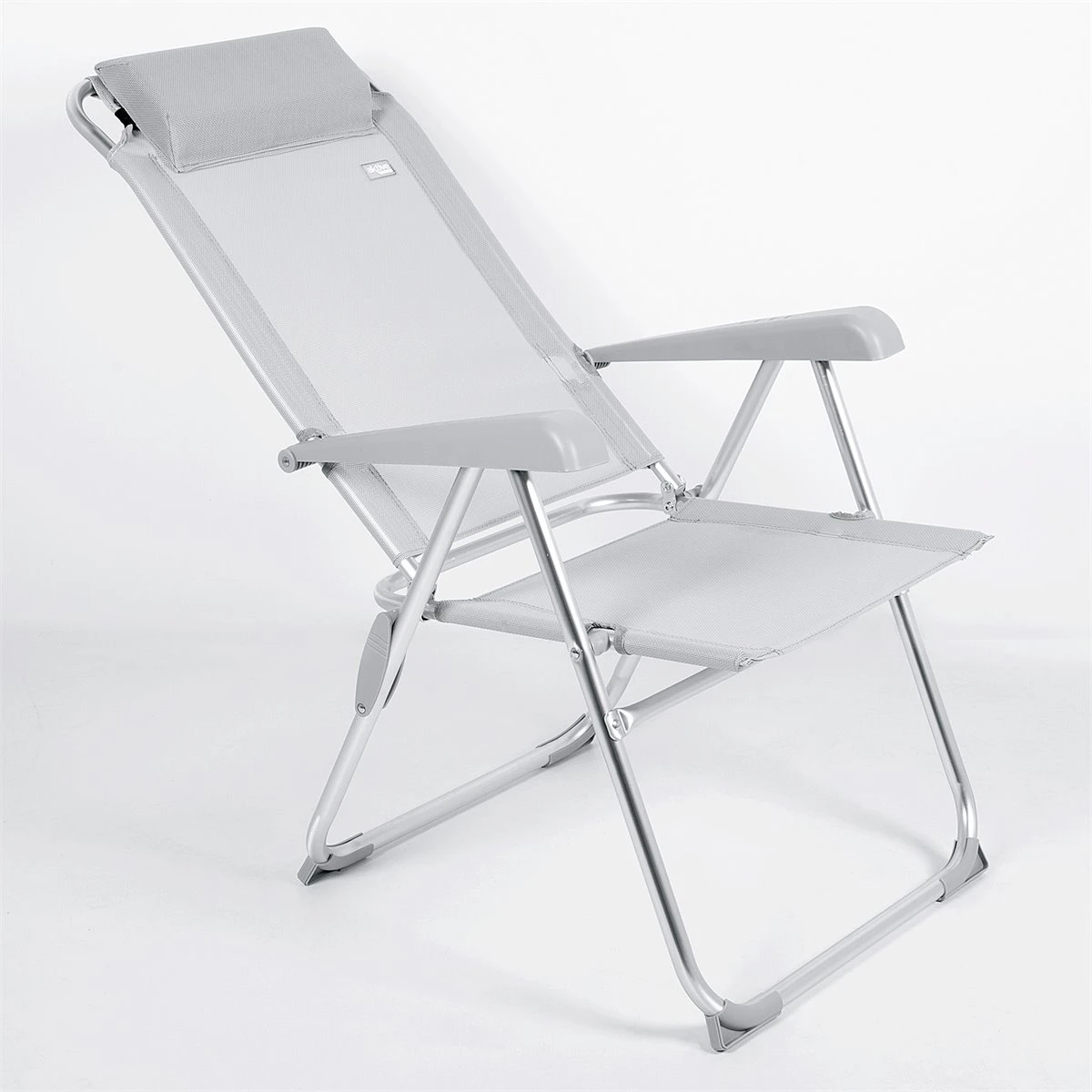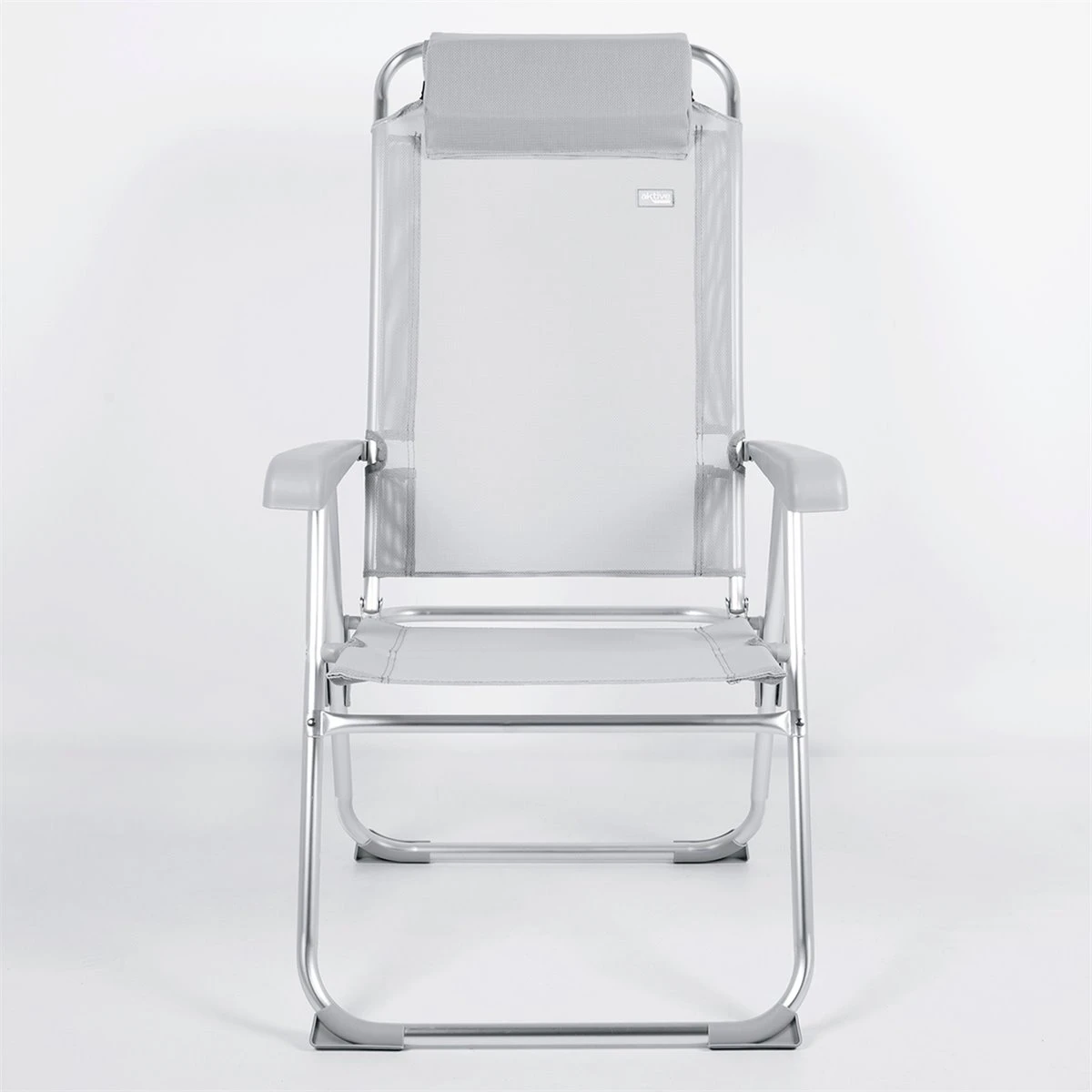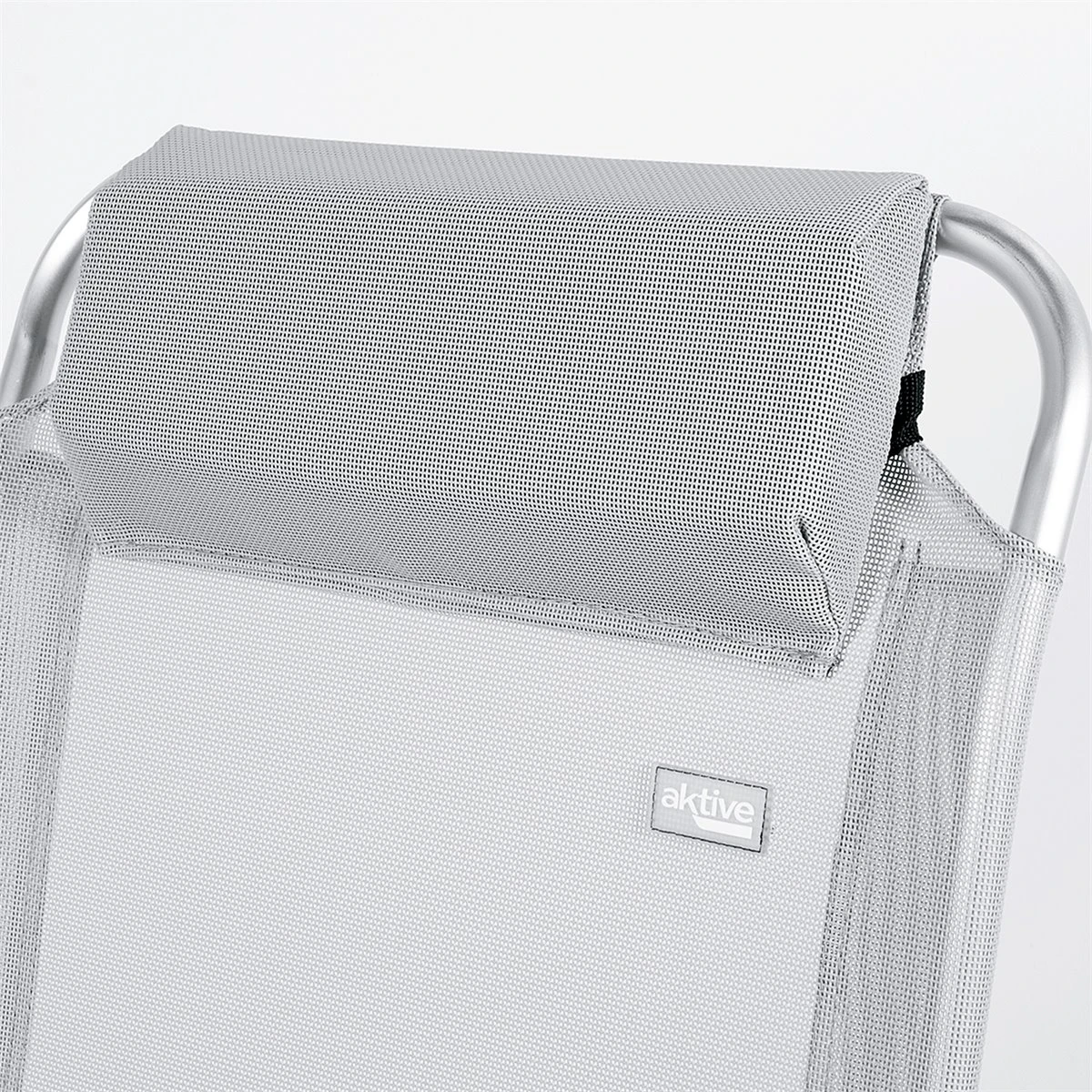 - Silla camping plegable color gris Aktive Camping con cojín acolchado y topes antivuelco para mayor seguridad