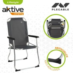 - Silla camping plegable alta color gris antracita para reinventar tus escapadas al aire libre Aktive Camping