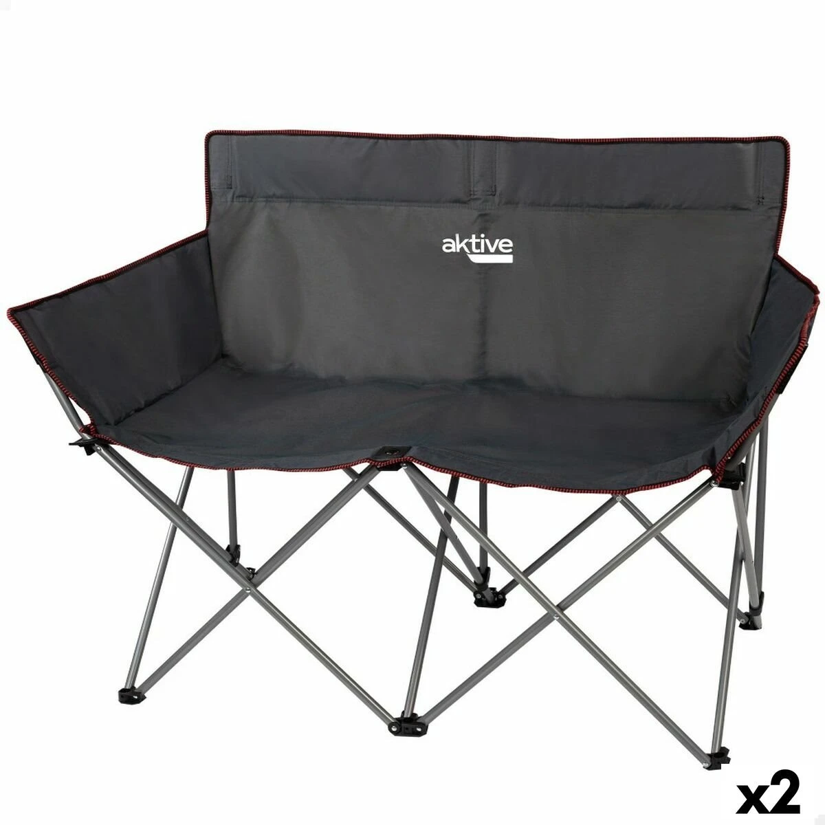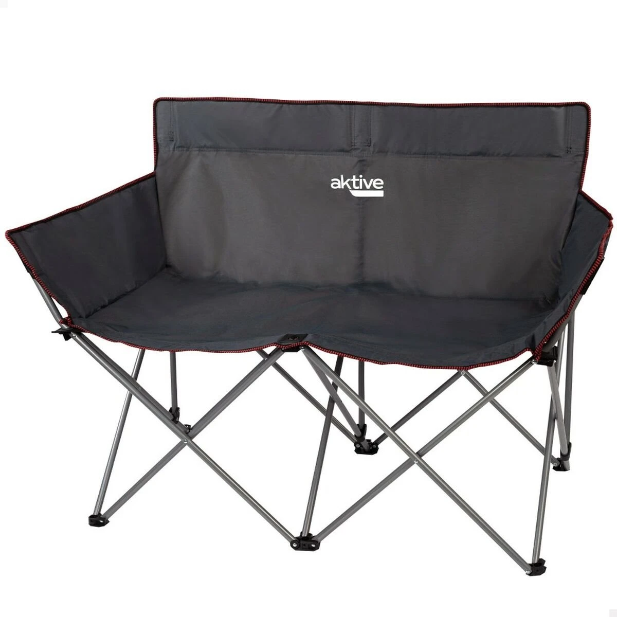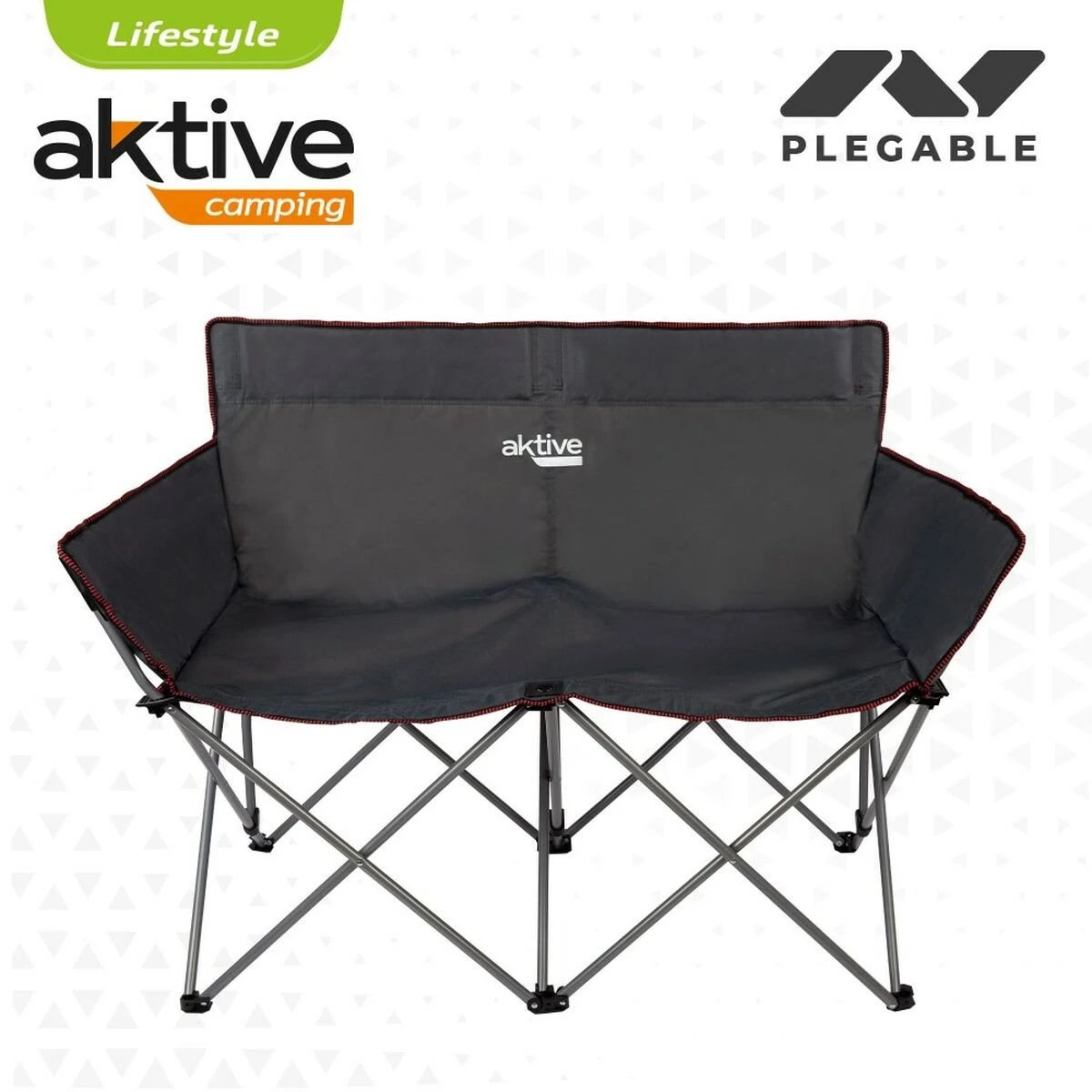 ¡EquĂpate con los mejores accesorios de camping en todas tus vacaciones y escapadas a la naturaleza gracias a Aktive! Esta silla para camping con asiento doble de Aktive Camping tiene unas medidas abierta de 107 x 63 x 88 cm y la altura de los asientos es de 47 cm. Plegada mide 22 x 90 cm. Su estructura es de acero revestido en polvo y soporta 110 kg por persona. Su doble asiento es de poliĂ©ster en color negro, tiene costuras reforzadas con hilo en color rojo y se pliega tipo acordeĂłn. De fácil limpieza y transporte. Cuenta con bolsa con asa para guardar y transportar. Lleva incorporadas patas con topes de base ancha para terrenos blandos.