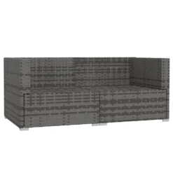 ¡Relájate y disfruta de tu tiempo libre con este elegante sofá de 2 plazas! Combinado con otros asientos, satisface diferentes necesidades. Estructura robusta: Este asiento para patio cuenta con una robusta estructura de acero con recubrimiento en polvo y patas de plástico cromado, que es muy duradero.Material de primera calidad: El sofá de jardín está diseñado con ratán PE resistente al agua, por lo que es fácil de limpiar, robusto y adecuado para usar a diario al aire libre.Diseño modular: El diseño modular también permite colocar el conjunto en cualquier disposición o combinarlos con otros segmentos modulares para satisfacer tus necesidades.Cómodos cojines y almohadas: Los cojines y las almohadas acolchados gruesos y extraíbles brindan una comodidad óptima para que te sientes al aire libre. Nota:Para prolongar la vida de tus muebles de exterior, te recomendamos que los protejas con una funda impermeable. Color: GrisColor del cojín: Azul oscuroMaterial: Ratán PE, acero con recubrimiento en polvo, plásticoMaterial del cojín/almohadón: Tela (100% poliésterDimensiones totales: 140 x 70 x 60,5 cm (largo x ancho x altoDimensiones de cada sofá esquinero: 70 x 70 x 60,5 cm (largo x ancho x altoProfundidad del asiento: 63 cmAltura del asiento desde el suelo: 30 cmDimensiones del cojín de asiento: 63 x 63 x 3 cm (largo x ancho x grosorDimensiones del almohadón de respaldo grande/pequeño: 63/53 x 40,5 cm (largo x anchoRequiere montaje: SíLa entrega contiene:2 x Sofás esquineros2 x Cojines de asiento2 x Almohadones grandes de respaldo2 x Almohadones pequeños de respaldo