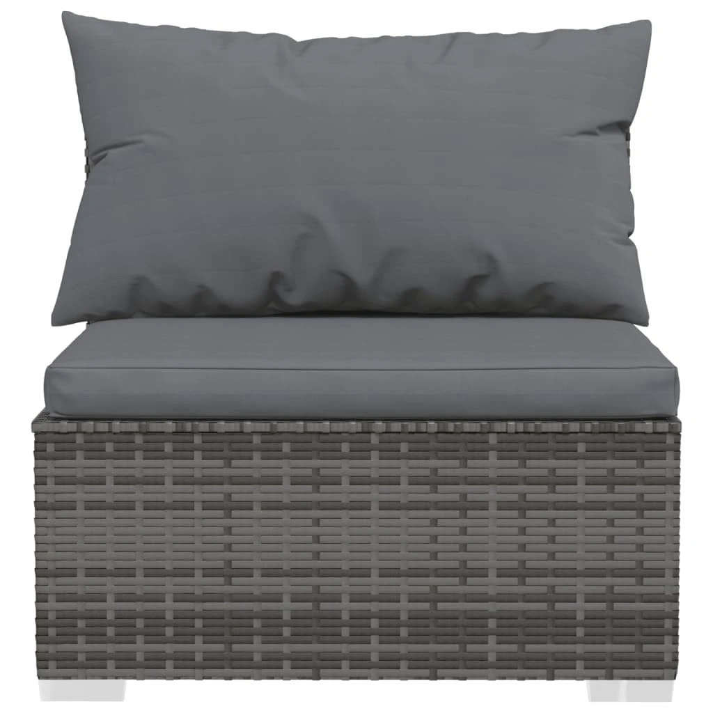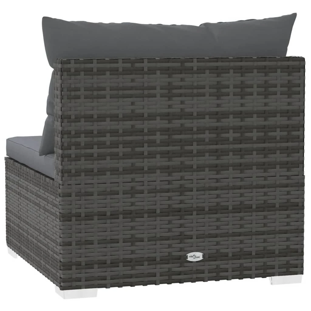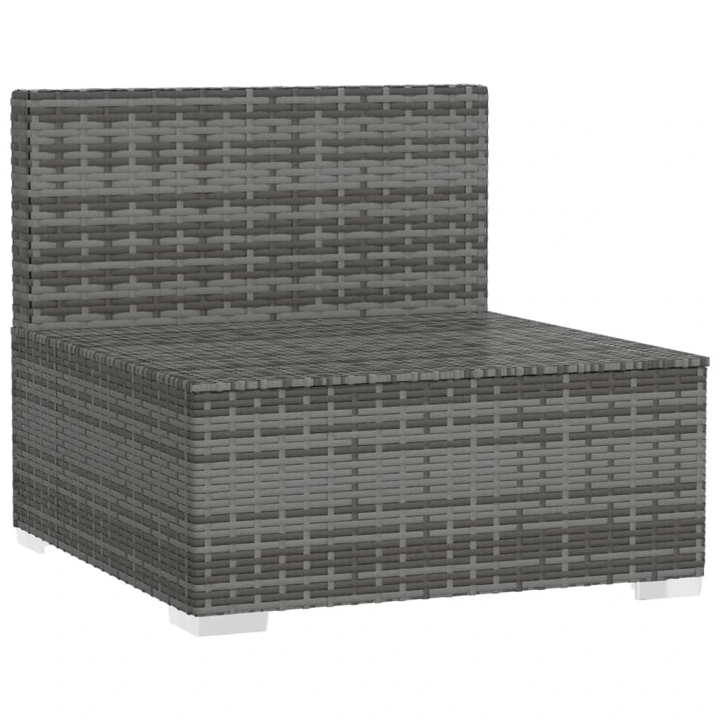 Este elegante sofá de 3 plazas es una excelente elección para que disfrutes del tiempo libre tanto fuera como dentro de casa. ¡Combina estilo y funcionalidad a la perfección! El asiento de patio posee una robusta estructura de acero con recubrimiento en polvo y patas de cromado plástico, que es muy duradero. El sofá triplaza está diseñado con ratán PE impermeable, por lo que es resistente y adecuado para el uso diario al aire libre. Gracias a la construcción ligera, este sofá de jardín es fácil de mover. Los cojines acolchados y extraíbles son muy cómodos. Además, el diseño modular también permite colocar el conjunto en cualquier disposición o ¡combinarlo con otros segmentos modulares para satisfacer tus necesidades! Nota: Para prolongar la vida de tus muebles de exterior, te recomendamos que los protejas con una funda impermeable. Color: GrisColor de cojín: Gris antracita oscuroMaterial: Ratán PE, acero con recubrimiento en polvo, plásticoMaterial del cojín/almohadón: Tela (100% poliésterDimensiones totales: 210 x 70 x 60,5 cm (largo x ancho x altoDimensiones de cada sofá central: 70 x 70 x 60,5 cm (largo x ancho x altoProfundidad del asiento: 63 cmAltura del asiento desde el suelo: 30 cmDimensiones del cojín de asiento: 70 x 63 x 3 cm (largo x ancho x grosorDimensiones del almohadón de respaldo: 70 x 40,5 cm (largo x anchoRequiere montaje: SíLa entrega contiene:3 x Sofás centrales3 x Cojín de asiento3 x Almohadas de respaldo