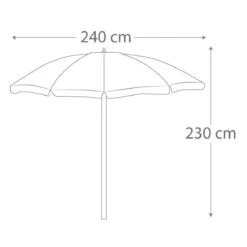 - Diámetro sombrilla 240 cm, diámetro mástil 32/32 mm y 8 varillas