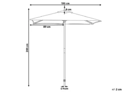 Sombrilla de jardín. Añade modernidad a tu zona exterior con esta sombrilla de jardín. El toldo de tela de poliéster resistente y el poste fijo de madera de abedul garantizan protección contra los rayos UV, el agua y condiciones climáticas adversas. El mecanismo de cuerda permite cerrar y abrir la sombrilla con facilidad. Detalles: Tipo de Producto: Sombrilla Estilo: Moderno Color: Beige Tonalidad: Beige claro Tipo de material: Madera maciza Material principal: Poliéster Material adicional: Madera de abedul Composición del Material: 100% Poliéster Forma: Rectangular Rotación 360: No Placas: No LED: No Número de láminas: 6 Láminas: 6 Inclinación: No Mecanismo de abertura de la sombrilla: Cuerda Dimensiones: Profundidad: 144 cm Ancho: 195 cm Diámetro del poste: 38 Altura: 244 cm Peso: 5 kg La oferta incluye: 1 x Sombrilla, No incluye: base Ventajas: Práctico sistema de abertura con cuerda, Diseño atemporal, Construcción muy estable, Resistencia UV, UPF 50+ (filtra el 98% de la radiación UV, Mantenimiento sencillo Información de montaje: Requiere montaje parcial. 5-15 min. Información adicional: Debe tenerse en cuenta que el peso ideal de la base para la sombrilla es de unos 20-25 kg. De esta forma, la sombrilla podrá soportar vientos de hasta 25 km/h. Texto de resistencia: El producto está hecho con tela resistente a los rayos UV, lo que significa que se puede usar bajo la luz del sol sin preocuparse por la pérdida de color. En cualquier caso, es recomendable colocar los muebles debajo de una cubierta impermeable cuando no se utilicen, para asegurar su máxima durabilidad. Resistencia: Rayos UV Consejos de mantenimiento: Poliéster: 1.Aspire con un accesorio adecuado 2.Limpiar con champú seco y una esponja húmeda o un limpiador suave 3.Cuando no esté en uso, manténgalo en un lugar limpio y seco para protegerlo de las condiciones atmosféricas. Madera de abedul: 1.Limpiar con un limpiador suave y un paño suave en la dirección de la veta. Secar con un paño inmediatamente después de limpiar 2.Durante el invierno o en condiciones climáticas adversas, utilice una funda protectora o guarde los muebles en el interior 3.Los muebles con acabado de aceite deben volverse a engrasar antes de ponerlos en uso y al menos una vez al año, especialmente en el clima húmedo.