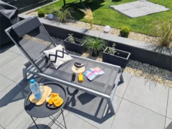 Tumbona de jardín blanca en Aluminio. Esta tumbona de aluminio de alta calidad hará de su exterior el espacio perfecto para disfrutar con sus invitados. De excelente calidad, esta pieza atrapará la mirada de todos por su diseño único y su aspecto moderno. Gracias al sólido marco en aluminio, y a la durabilidad del tejido, el mueble le garantizará una larga vida útil. La tumbona, fabricada por materiales ecológicos y respetuosos del medio ambiente, está resiste a la intemperie, a los rayos UV, y es totalmente anti-manchas. Puede dejar este mobiliario al exterior durante todo el año sin riesgo de dañarlo. Junto con el fabricante controlamos la calidad de cada pieza de mobiliario, para garantizar acabados impecables. Modelo disponible en blanco y negro. Detalles: Tipo de Producto: Tumbona Estilo: Moderno Color: Blanco Tipo de material: Material sintético Material principal: Aluminio Composición del Material: 100% Textil trenzado Respaldo ajustable: Sí Apoyabrazo: No Acabado: Revestimiento en polvo Plegable: No Dimensiones: Profundidad: 190 cm Espesor del asiento: 8 cm Altura del asiento: 27 cm Ancho: 66 cm Altura: 23-103 cm Peso: 9 kg Capacidad de peso: 190 kg La oferta incluye: 1 x Chaise longue, 1 x Cojín Ventajas: Respaldo ajustable en 6 posiciones, Fijación fácil y segura de los cojines gracias a los prácticos cierres de velcro, Perfecto para todo tipo de exterior, Robusto marco resistente a la corrosión, Resistencia UV 4 (ISO 105-B02 Información de montaje: Requiere montaje completo. 20-40 min. Texto de resistencia: El producto es resistente al agua, lo que significa que no se dañará expuesto a la lluvia o en contacto con otros líquidos. Puede dejarlo al aire libre incluso durante fuertes lluvias o humedad. Durante la temporada de invierno es recomendable almacenar el producto en el interior o bajo una cubierta impermeable. Resistencia: Agua Consejos de mantenimiento: Textil trenzado: 1.Limpiar con un limpiador a base de jabón suave y un paño suave, 2.El material es extremadamente resistente a la intemperie. Sin embargo, se recomienda utilizar una funda protectora para la temporada de invierno o, si es posible, guardar los muebles en un lugar fresco y seco 3.Manténgalo alejado de fuentes de calor, como parrilla o fuego, ya que las chispas pueden causar daños graves. No coloque utensilios calientes directamente sobre la superficie Aluminio: 1.Fuera de temporada, utilice una funda protectora o guarde los muebles en un lugar fresco y seco 2.Limpiar con agua jabonosa y detergentes suaves. Quitar el polvo con un paño suave.