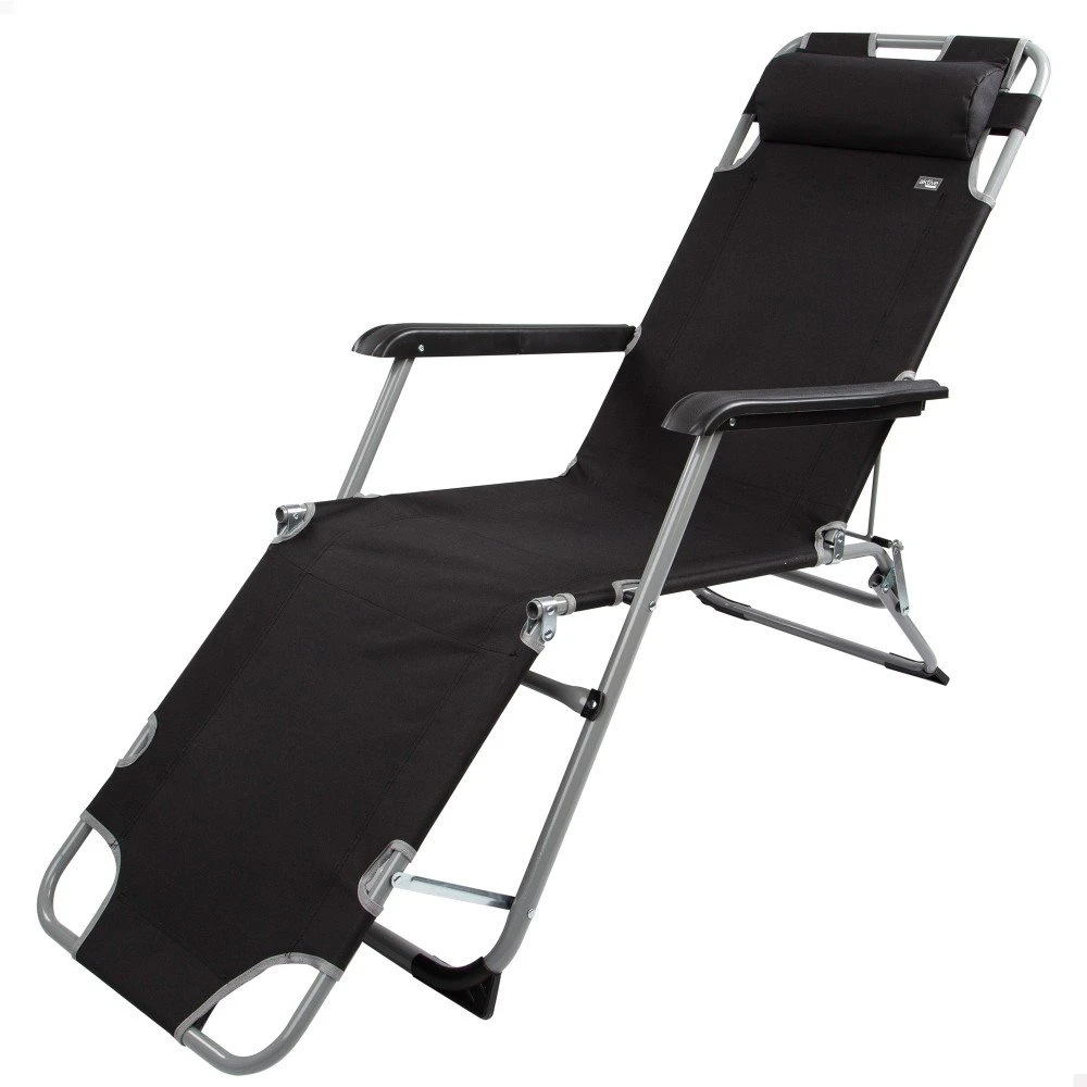 - Tumbona plegable jardín color negro con cojín acolchado extraíble y asas de transporte Aktive Garden