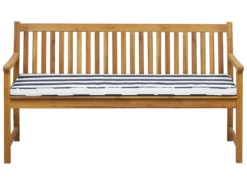 Banco De Jardín De Madera Con Cojín Azul Marino/blanco 160 Cm VIVARA